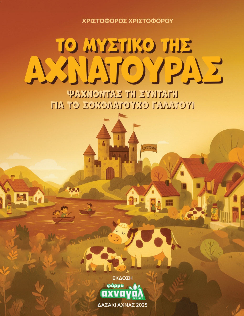 "Το μυστικό της Αχνατούρας: Ψάχνοντας τη συνταγή για το σοκολατούχο γαλατούι" με εικονογράφο την Στέλλα Ανδρονίκου, Εκδοση Φάρμας Αχναγάλ, Δασάκι Άχνας 2025, καταπιάνεται με τις αξίες που φυλάσσονται σε μια χώρα, και μπορεί να τις βρει όποιος είναι έτοιμος να τις ενστερνιστεί. Η συνταγή για το σοκολατούχο γαλατούι είναι συμβολική, κρύβει τις αξίες και τα ιδανικά που πρέπει να διέπουν τις πρακτικές μας (κοινωνία, περιβάλλον, ανθρωπιά, συνεργασία).