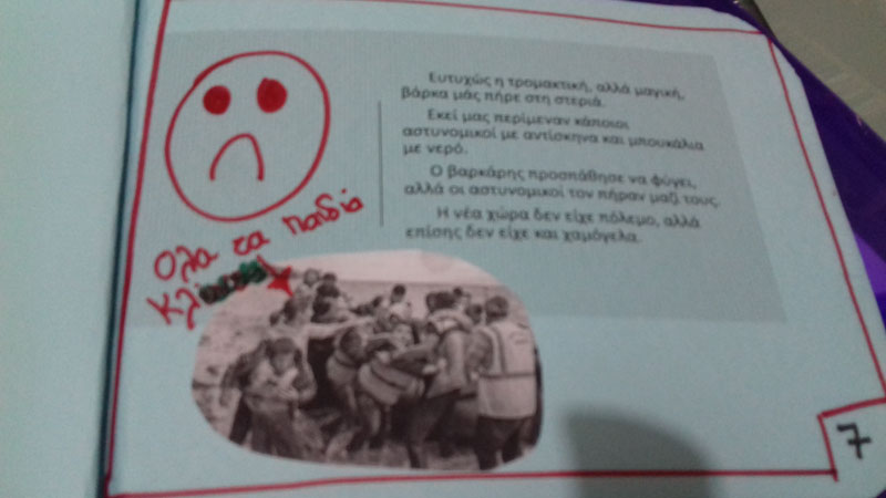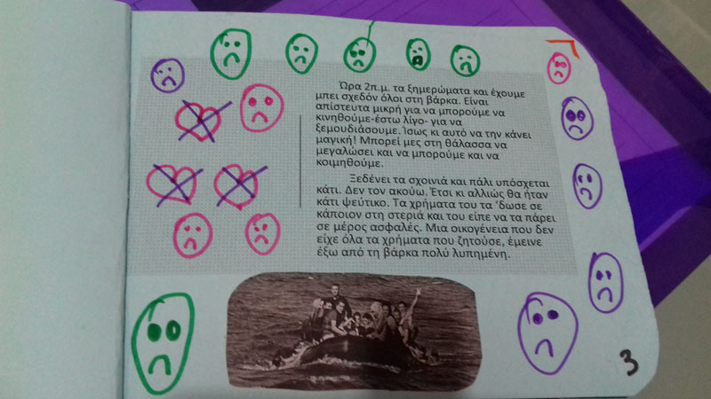 Σχεδιάζουν πρόσωπα που αντανακλούν συναισθήματα που βίωσαν επιβάτες στη βάρκα (λύπη, ανακούφιση κ.λπ.).